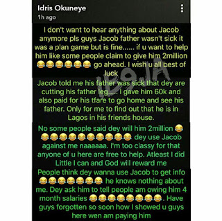 others All is Not well between Famous Celebrity Gateman Jacob and Oga Bobrisky, In Other Words Jacob Don Dupe Him Oga!!! Last updated: 2017/12/04 at 2:47 PM By Blackdotmandy 0 Min Read Share SHARE Jacob has Betrayed Bobrisky.Shim narrated the story and claims people are trying to use Jacob to get to shim via snapchat and it’s quite funny…. You Might Also Like NEW TUNE TO HIT THE AFRICAN MUSIC INDUSTRY SOON! THE DENIAL OF MODERN DAY RACISM CARDI B AND OFFSET ARE OFF !! 3 ARRESTED FOR TORTURE Blackdotmandy December 4, 2017 Share this Article Facebook Twitter Whatsapp Whatsapp Previous Article New Music From Wizkid and Kiss Daniel Coming Soon!! Next Article Ebuka and Friends Recall a Near Death Encounter they Experienced in the hands of SARS #EndSars Leave a comment Leave a Reply Cancel replyYour email address will not be published. Required fields are marked *Comment * Name * Email * Save my name, email, and website in this browser for the next time I comment. Δ Stay Connected Facebook Like Twitter Follow Instagram Follow Youtube Subscribe Latest News The Men Of Love Island Are On An All Expense Paid Trip In Mallorca Reality TV The Perks Of Dating A Content Creator Lifestyle Fenty Beauty UK Unveils Denola Grey As The New Face Of The Brand Beauty Fenty Lifestyle Hilda Baci Goes On The Timer For Four Days Cook-a-thon To Set A New Guinness World Record Lifestyle