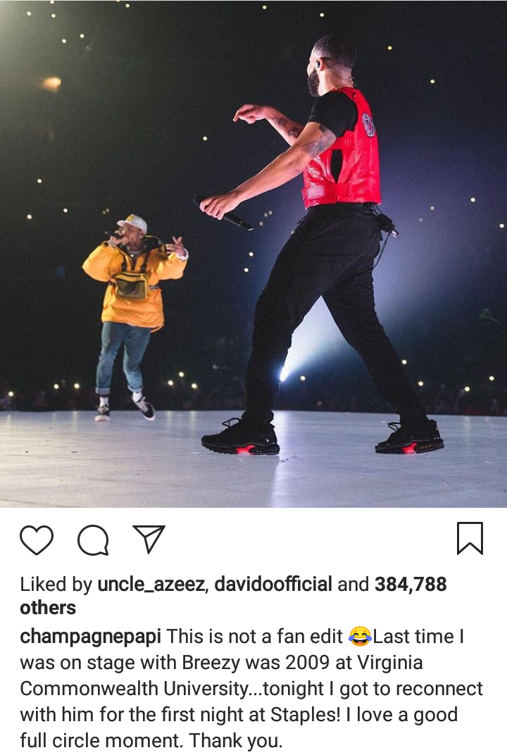 Well well well! Look what we have here, last night at Drake’s show in Staples Center he brought out Chris Brown on stage. Both artist have been having it at each other for years now due to their love for Barbados singer Rihanna . Drake also has ended his beef with Meek Mill. See more after the cut…