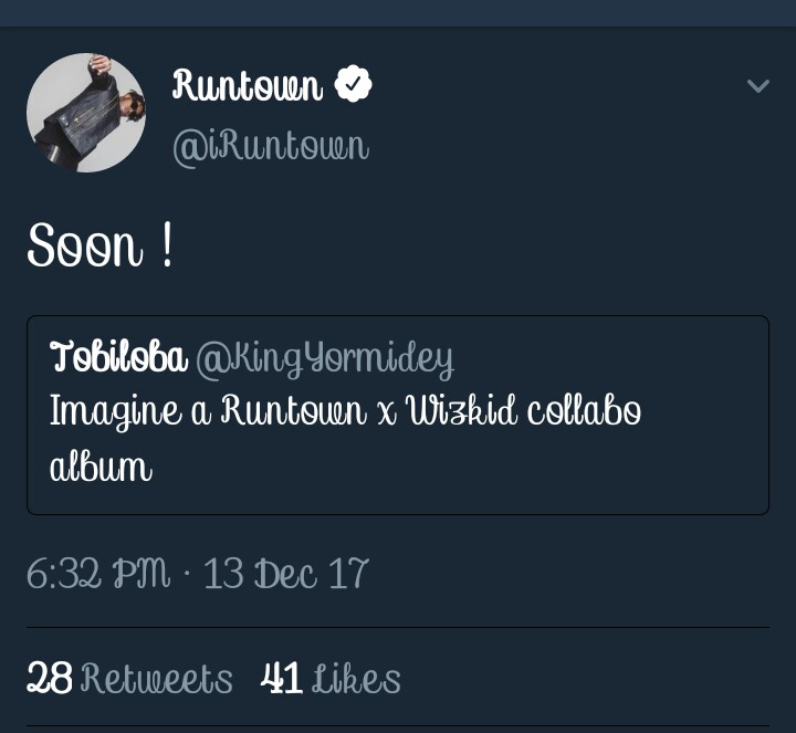 others Collab Album From Wizkid and Runtown Coming Soon Last updated: 2017/12/13 at 5:56 PM By Blackdotmandy 0 Min Read Share SHARE Yass Please. “Mad Over You ” crooner just confirmed there’s an album from him and Wizkid. When, we don’t know but soon he tweeted…. See post below. You Might Also Like NEW TUNE TO HIT THE AFRICAN MUSIC INDUSTRY SOON! THE DENIAL OF MODERN DAY RACISM CARDI B AND OFFSET ARE OFF !! 3 ARRESTED FOR TORTURE Blackdotmandy December 13, 2017 Share this Article Facebook Twitter Whatsapp Whatsapp Previous Article Between Runtown And Davido. Next Article What is a Female Hyena called? Who is Bobrisky ? List of things that made it to Top Google Searches in Nigeria 2017 Leave a comment Leave a Reply Cancel replyYour email address will not be published. Required fields are marked *Comment * Name * Email * Save my name, email, and website in this browser for the next time I comment. Δ Stay Connected Facebook Like Twitter Follow Instagram Follow Youtube Subscribe Latest News The Men Of Love Island Are On An All Expense Paid Trip In Mallorca Reality TV The Perks Of Dating A Content Creator Lifestyle Fenty Beauty UK Unveils Denola Grey As The New Face Of The Brand Beauty Fenty Lifestyle Hilda Baci Goes On The Timer For Four Days Cook-a-thon To Set A New Guinness World Record Lifestyle