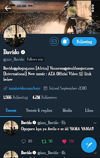After The A.D.A.M sound video of Memory went viral on twitter with over 20k views and a hashtag to trend alongside the #SIGNADAM ,he finally got a step closer to the response he wanted. Superstar Davido has already followed him on twitter and the next would definitely be a feature. **Cargratulations A.D.A.M** I hope you get what I mean🤣