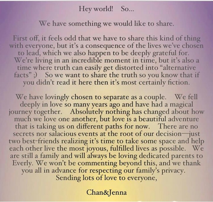 Actors Channing and Jenna Tatum call it quits after 8 years of marriage. The couple met on the set of ” Step Up ” in 2006 and got married 4 years later. The couple both announced their break up via and Instagram post and would respect some privacy from their fans. See below….