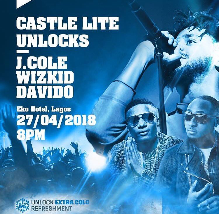 Brewery Company and Beer Brand Castle Lite is bringing America Rapper and Poet JCole to Nigeria on the 27 of April this year at the Eko Hotel and suites for the Castle Lite Unlocks party. Also set to perform is Starboy Wizkid and OBO Davido. Yey!!! JCole is coming to naija, don’t that I can make it but still..Dont miss this. See the ad below…