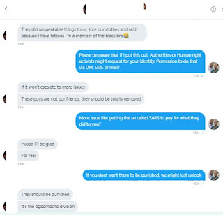 She had the convo with Bhadmus Hakeem about being brutalized with her friend by SARS at Ogbomoso,which Bhadmus Shared Online. This is not a nice story at all, with the ongoing #EndSARS campaign going online we hope something can be done. Meanwhile see the rest of the conversation below…
