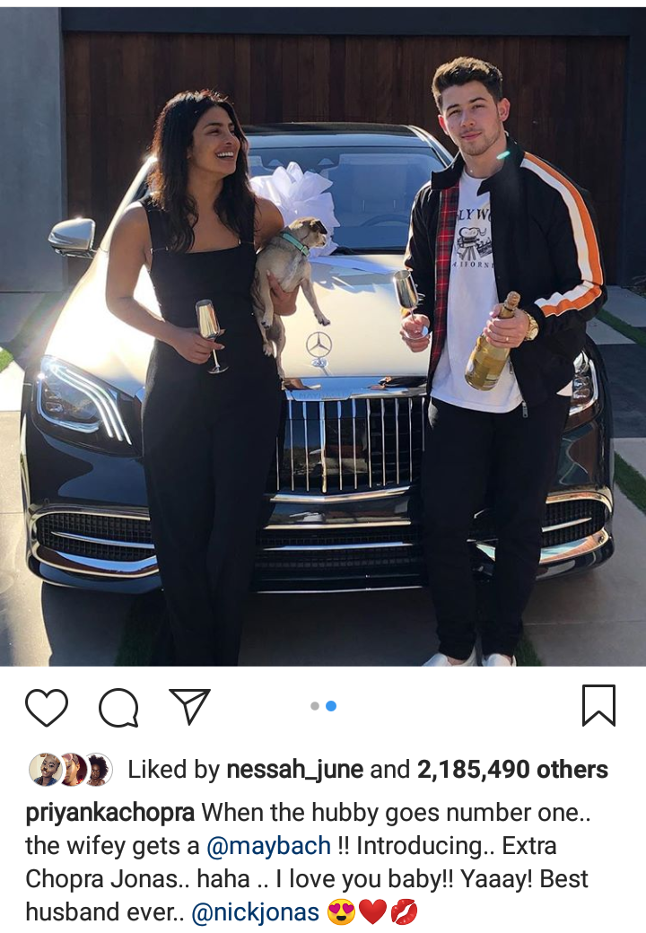 Meanwhile Priyanka took to the gram to celebrate her new gift and thanking her husband tagging her Maybach as “Extra Chopra Jonas”