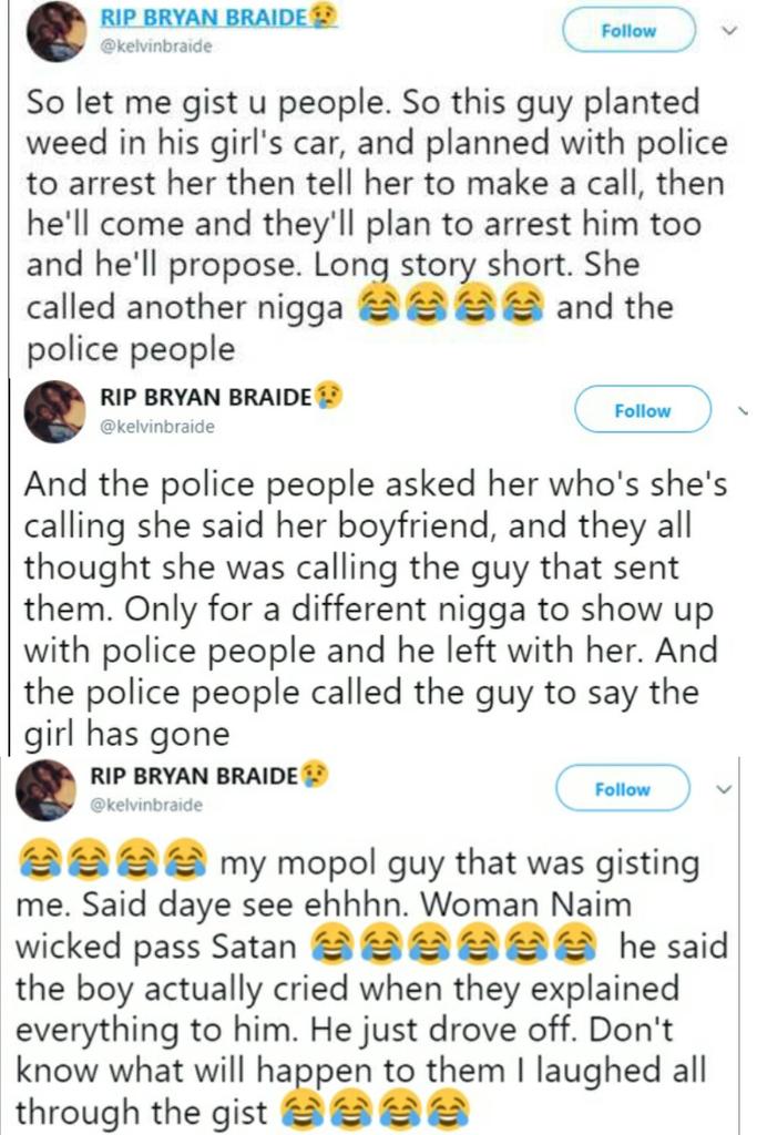 others Nigerian Guy Planned With The Police to Propose To His Girlfriend But It Goes Incredibly Wrong Last updated: 2017/12/03 at 3:17 PM By Blackdotmandy 0 Min Read Share SHARE I just can’t… Lmao You Might Also Like NEW TUNE TO HIT THE AFRICAN MUSIC INDUSTRY SOON! THE DENIAL OF MODERN DAY RACISM CARDI B AND OFFSET ARE OFF !! 3 ARRESTED FOR TORTURE Blackdotmandy December 3, 2017 Share this Article Facebook Twitter Whatsapp Whatsapp Previous Article Atiku Abubakar Speaks out on Cruelty of Special AntiRobbery Squad While Presidency Denies Buhari Being Ban From America Next Article See This Photo Ladies, Do You Trust your Man That much? Leave a comment Leave a Reply Cancel replyYour email address will not be published. Required fields are marked *Comment * Name * Email * Save my name, email, and website in this browser for the next time I comment. Δ Stay Connected Facebook Like Twitter Follow Instagram Follow Youtube Subscribe Latest News The Men Of Love Island Are On An All Expense Paid Trip In Mallorca Reality TV The Perks Of Dating A Content Creator Lifestyle Fenty Beauty UK Unveils Denola Grey As The New Face Of The Brand Beauty Fenty Lifestyle Hilda Baci Goes On The Timer For Four Days Cook-a-thon To Set A New Guinness World Record Lifestyle