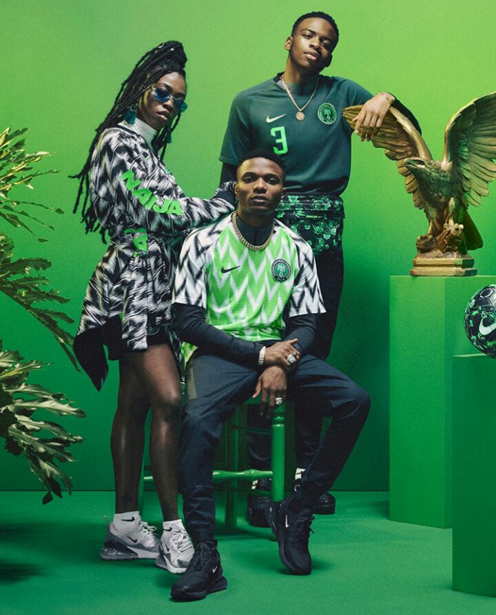 The Official Kit for Super Eagles was released today, the Jersey was designed by Wizkid and cost #41,000 ,while the tracksuit is #100,000. Teaming up with Alex Iwobi,Kelechi Iheanacho, Winifred Ndidi, Julie Adenuga, Grace Ladoja, Yagazie Emezi and Not3sofficial they created this amazing photos to channel the eagles.