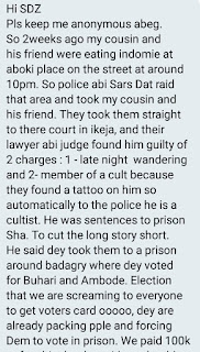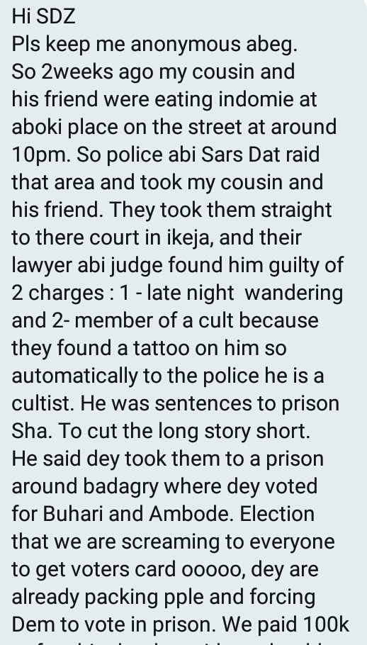 NaijaTwitter And InstagramTwitter Naija ON ANOTHER EPISODE OF WHAT SARS DO TO NIGERIAN YOUTHS Last updated: 2018/08/14 at 11:58 AM By Blackdotmandy 0 Min Read Share SHARE He said stay in your house once it’s 9.#EndSars. Read ss for full gist You Might Also Like REDEFINING NEW WAVE CEE GETS A SUPRISED BENZ FOR ROYAL HAIR AMBASSADOR DEAL [DOWNLOAD MP3] NICKI MINAJ – MEGATRON [DOWNLOAD MP3] RUKKYSMASH – PAIN /FREESTYLE/ Blackdotmandy August 14, 2018 Share this Article Facebook Twitter Whatsapp Whatsapp Previous Article NIGERIAN GOVERNOR SHARES ONIONS AS A FORM OF EMPOWERMENT Next Article NIGERIAN ACTOR KENNETH OKOLIE GOES BEARDLESS Leave a comment Leave a Reply Cancel replyYour email address will not be published. Required fields are marked *Comment * Name * Email * Save my name, email, and website in this browser for the next time I comment. Δ Stay Connected Facebook Like Twitter Follow Instagram Follow Youtube Subscribe Latest News The Men Of Love Island Are On An All Expense Paid Trip In Mallorca Reality TV The Perks Of Dating A Content Creator Lifestyle Fenty Beauty UK Unveils Denola Grey As The New Face Of The Brand Beauty Fenty Lifestyle Hilda Baci Goes On The Timer For Four Days Cook-a-thon To Set A New Guinness World Record Lifestyle
