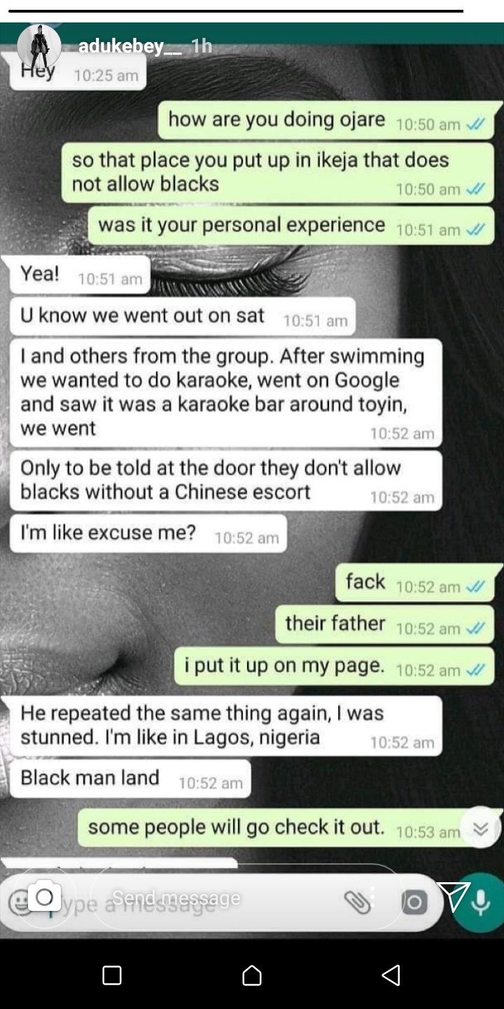 Just today a popular model of mother agency FEW models Adukebey goes on a rant on IG about how a restaurant don’t let in a black person without a Chinese escort. The Chinese restaurant that happens to display this foolish racist card has been identified as “Shi Shi ”