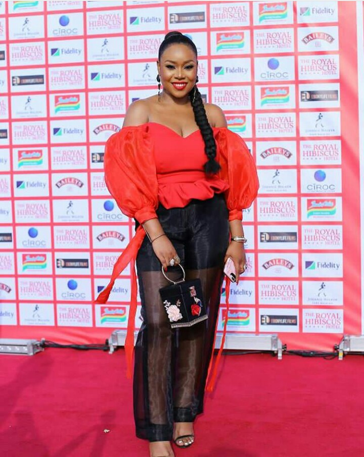 From the producers of The Wedding Party and EbonylifeTv, The Royal Hibiscus Hotel is coming to cinemas near you from February 9.The movie stars Zainab Balogun, Kenneth Okolie, Rachel Oniga ,Oc Ukeje ,Jide Kosoko and more. The Premiere of the movie was held at the Civic Center Lagos,and it was star-studded by the finest of nollywood and naija Music Industry and we’ve got photos too. Zainab Balogun bodied The Hibiscus designed gown by Imad Eduso Bridal.