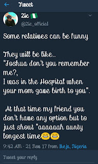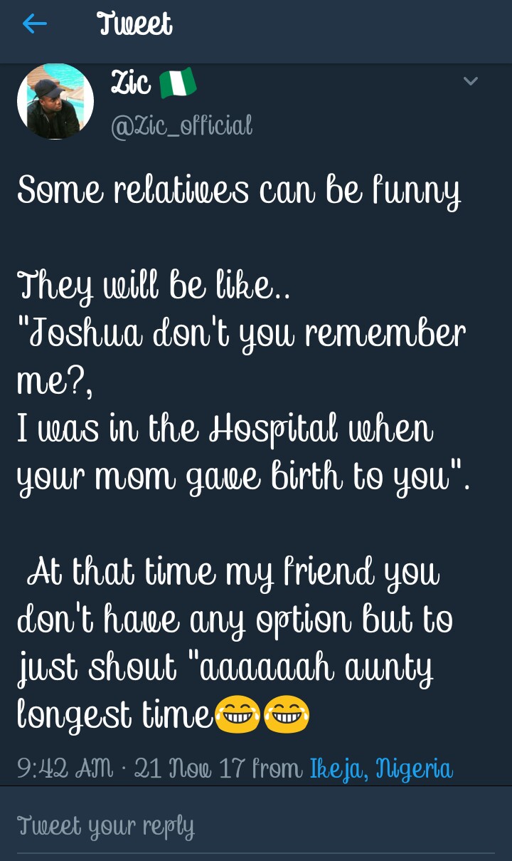 others See This Funny Tweet Only a Nigerian Will Understand Last updated: 2017/11/25 at 9:14 PM By Blackdotmandy 0 Min Read Share SHARE lol. This is so true. Has this ever happen to you? You Might Also Like NEW TUNE TO HIT THE AFRICAN MUSIC INDUSTRY SOON! THE DENIAL OF MODERN DAY RACISM CARDI B AND OFFSET ARE OFF !! 3 ARRESTED FOR TORTURE Blackdotmandy November 25, 2017 Share this Article Facebook Twitter Whatsapp Whatsapp Previous Article Solange Knowles and Her Music Team Cover for Calvin Klein Next Article An Undisclosed UNIBEN Student’s Hostel Application Slip Used to Wrap Roasted Plaintain. Leave a comment Leave a Reply Cancel replyYour email address will not be published. Required fields are marked *Comment * Name * Email * Save my name, email, and website in this browser for the next time I comment. Δ Stay Connected Facebook Like Twitter Follow Instagram Follow Youtube Subscribe Latest News The Men Of Love Island Are On An All Expense Paid Trip In Mallorca Reality TV The Perks Of Dating A Content Creator Lifestyle Fenty Beauty UK Unveils Denola Grey As The New Face Of The Brand Beauty Fenty Lifestyle Hilda Baci Goes On The Timer For Four Days Cook-a-thon To Set A New Guinness World Record Lifestyle