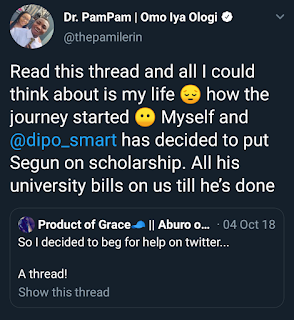 So a year ago a male twitter user Segun by name solicited for funds for his education in a post outlined down…
