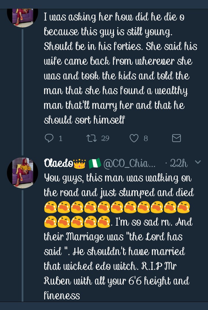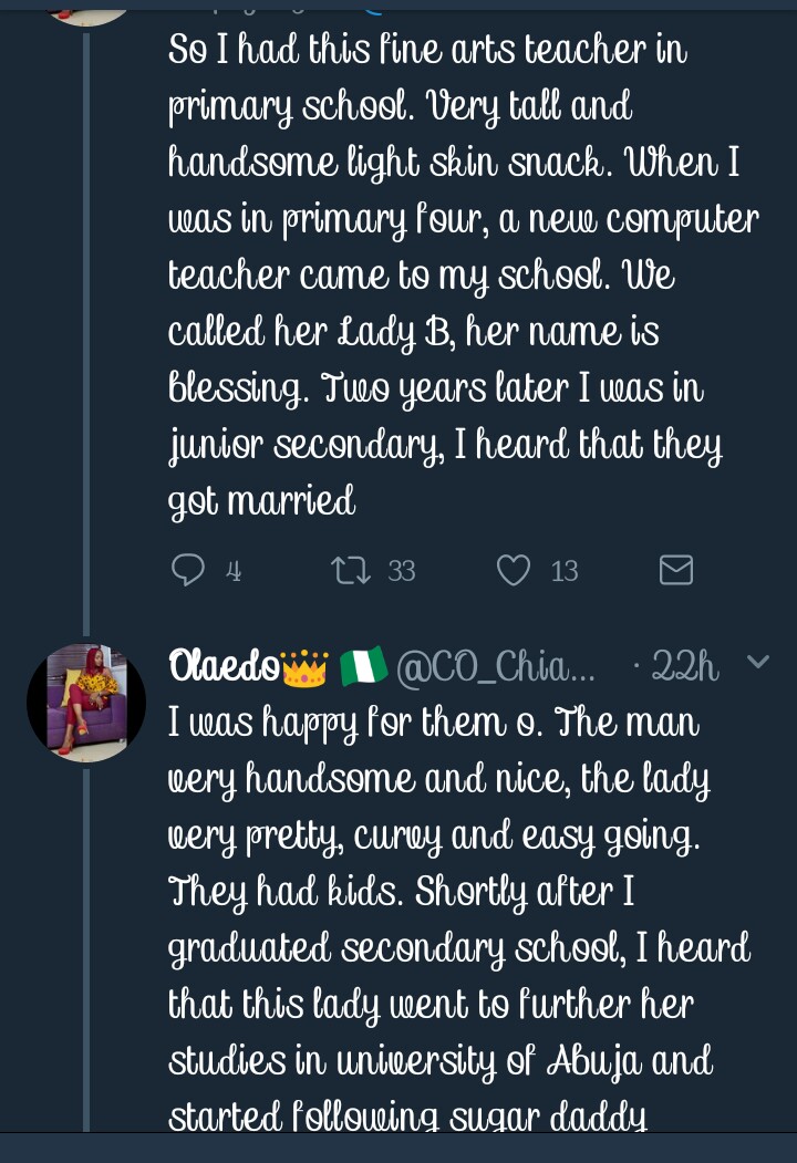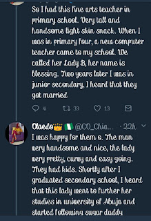 others Twitter User Shares Thread on Why You Shouldn’t Marry A bad Woman and Not Every “The Lord Said ” is actually Said by The Lord Last updated: 2017/12/09 at 5:17 PM By Blackdotmandy 0 Min Read Share SHARE As Shared by Twitter user Chiamaka. Read from top to bottom You Might Also Like NEW TUNE TO HIT THE AFRICAN MUSIC INDUSTRY SOON! THE DENIAL OF MODERN DAY RACISM CARDI B AND OFFSET ARE OFF !! 3 ARRESTED FOR TORTURE Blackdotmandy December 9, 2017 Share this Article Facebook Twitter Whatsapp Whatsapp Previous Article Karrueche Shares Pictures of Her hot body in The beach Next Article Tweet of The Day. Leave a comment Leave a Reply Cancel replyYour email address will not be published. Required fields are marked *Comment * Name * Email * Save my name, email, and website in this browser for the next time I comment. Δ Stay Connected Facebook Like Twitter Follow Instagram Follow Youtube Subscribe Latest News The Men Of Love Island Are On An All Expense Paid Trip In Mallorca Reality TV The Perks Of Dating A Content Creator Lifestyle Fenty Beauty UK Unveils Denola Grey As The New Face Of The Brand Beauty Fenty Lifestyle Hilda Baci Goes On The Timer For Four Days Cook-a-thon To Set A New Guinness World Record Lifestyle