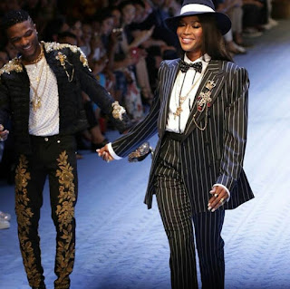 Nigerian Starboy Wizkid debuts his walk on the runway after flying privately with British model Naomi Campbell to Milan, Italy. He and Naomi walk for Dolce and Gabbana for the Men’s Wear for the Men’s Fashion week in Milan… See pictures from the runway after the cut…